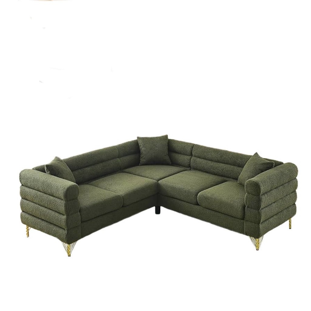 Дизайн: лаконичные и современные линии в сочетании с объёмными сегментами спинки создают эффект футуристичности, но при этом сохраняют уют. Золотистые ножки придают дивану нотку роскоши, визуально облегчая его конструкцию.