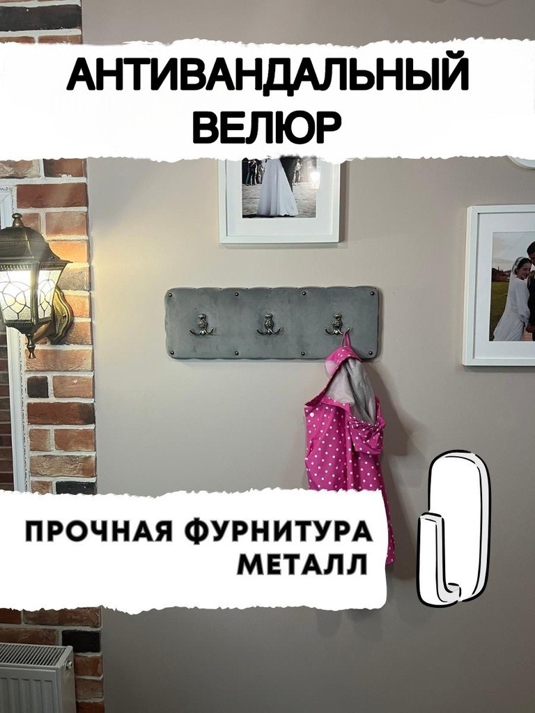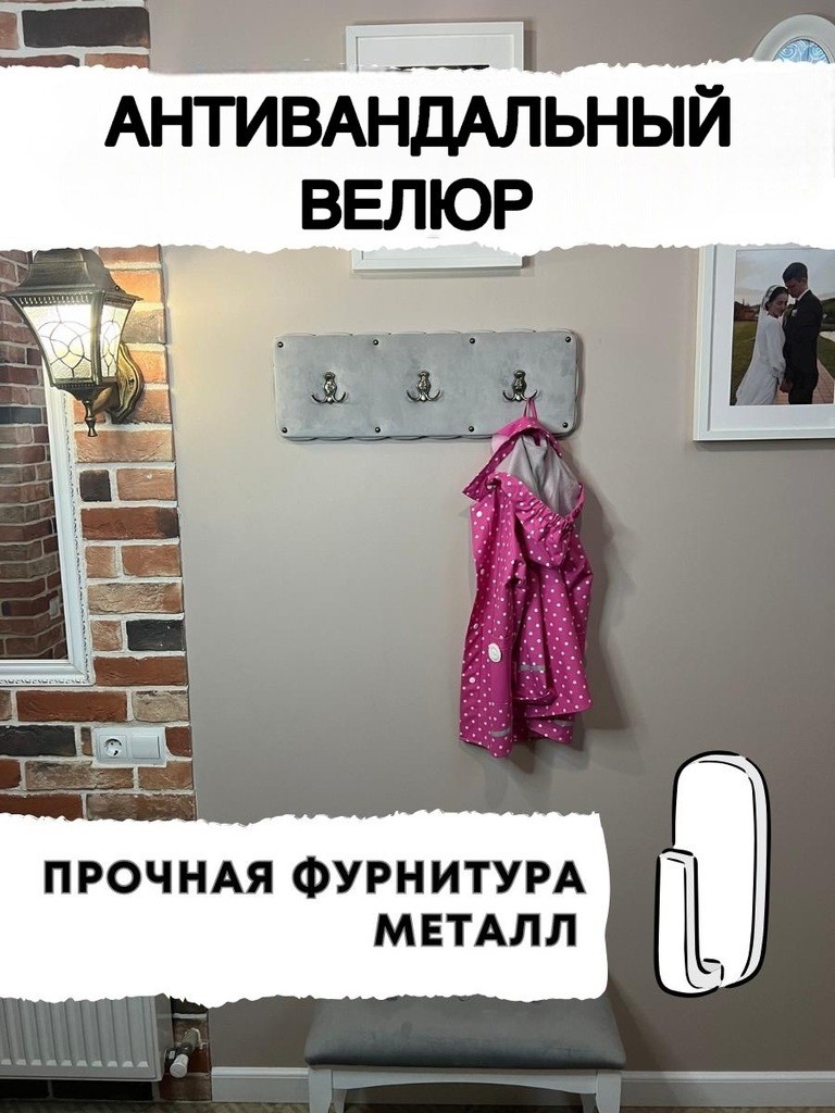 Вешалки настенные от производителя Les Mubles прекрасно впишутся в интерьер вашей прихожей. Вешалка подойдет для верхней одежды, имеет декоративные гвоздики и металические крючки. Она будет удобна для всей семьи. Можно закрепить как в комнату, спальню или на кухню чтобы повесить куртку, так и в гараж для одежды или в коридор. Отлично подойдет для декора вашего дома. Будет сочетаться с вашей мебелью, дверью, шкафом, стенкой как в лофт стиле так и вдругих современных стилях. Крепится на стену методом сверления. Товар поставляется во многих цветах в том числе черном и белом. Материал ткани износостойкий велюр и экокожа.
